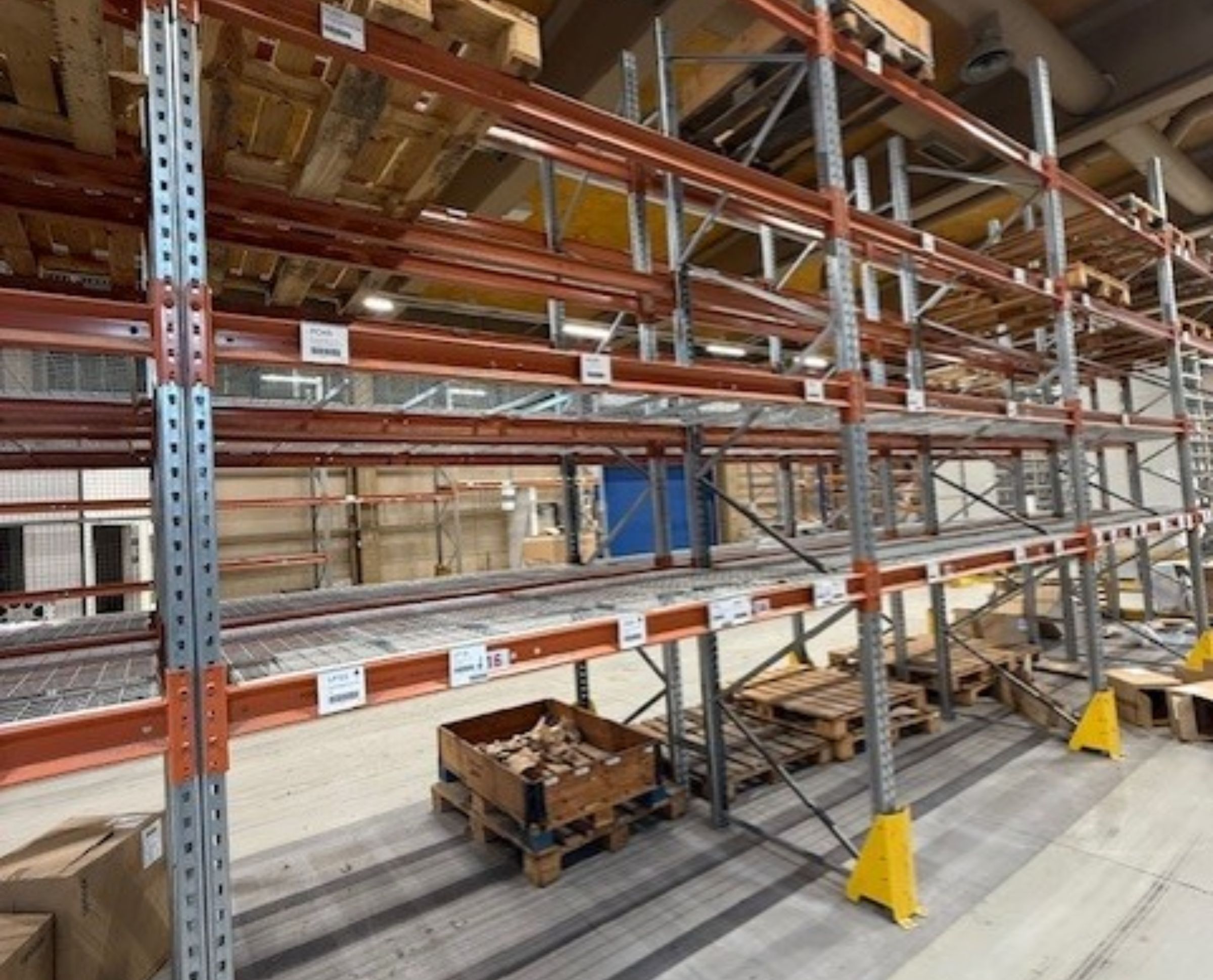 Begagnat pallställ. Höjd 4500 mm. Horisontell balk 2300 mm. Kan byggas i olika sammansättningar. Be om en offert!