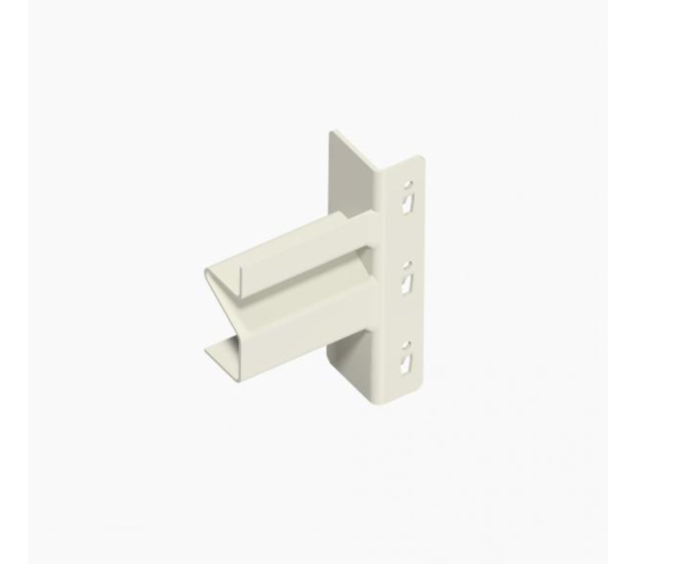 Den horisontella konsolen fästs i justeringshålen på pelarens framsida med hjälp av klackar. Den är utformad för att passa olika hyllmaterial som stål, plywood eller spånskiva. Monteringen är enkel med hjälp av de medföljande monteringsanvisningarna.