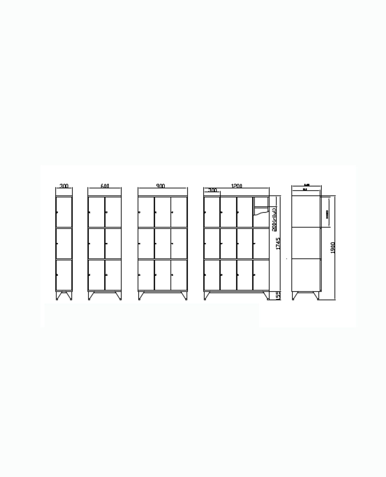 Förvaringsskåp 2 x 3 fack 600 x 1900 mm Solid
