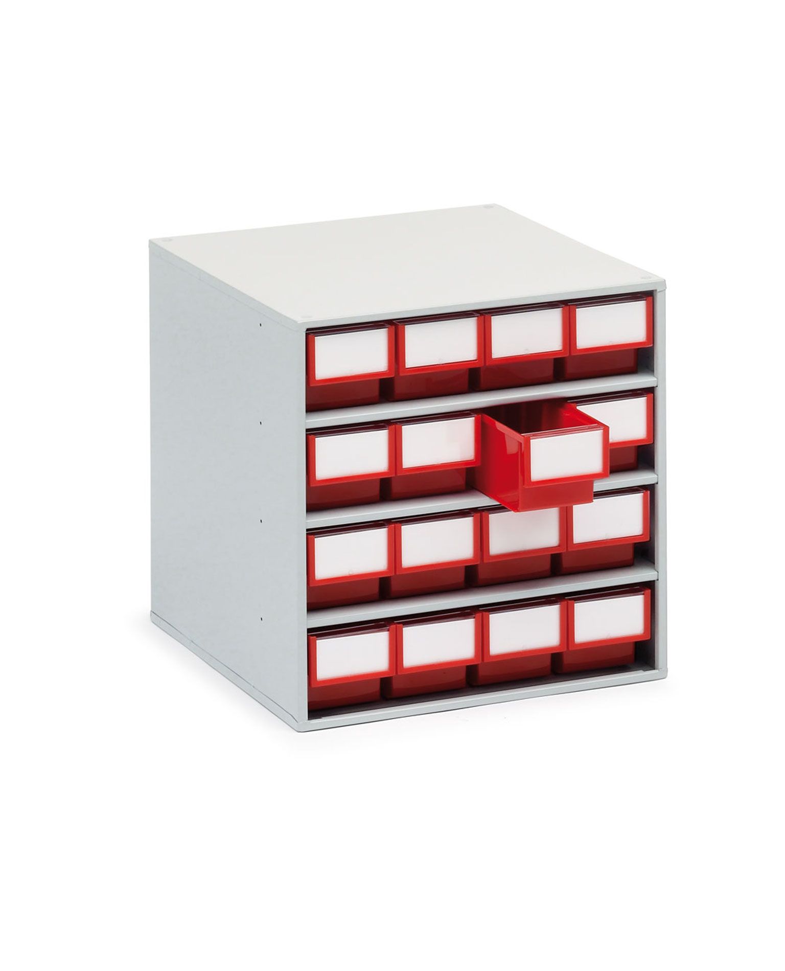 Finns i två djup, 300 och 400 mm. De genomskinliga lådorna är tillverkade av polystyren (PS). Blå, röda och grå lådor är tillverkade av polypropen (PP), med undantag för modell 4040, som är tillverkad av färgad polystyren (HIPS), med tillägg av tvärgående hyllor och vridbara ställningar.Råmaterialet för de färgade lådorna är polypropen (PP), värmebeständigt till -20 x +75°C. Beständig mot oljor, de flesta syror, alkalier och lösningsmedel. I klarglaslådorna är råmaterialet polystyren (PS), värmebeständigt till -40 x +55°C.