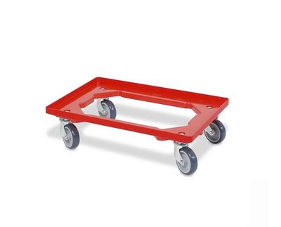Transportbricka av plast med hjul för 600 x 400 mm lådor. Det robusta men lätta universaltråget helt i plast (ABS) är hygieniskt och lätt att tvätta. Öppen botten. Finns även med botten av 9 mm plywoodfilm. Svängbara 100 mm hjul. Vikt 3,5 kg.