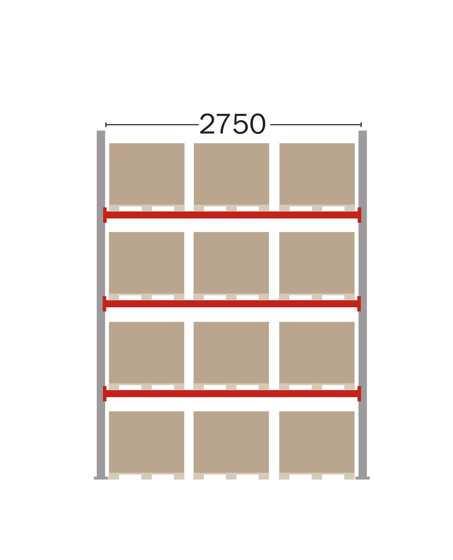 Pallställ basdel för 12 EUR-pallar, 4000 mm