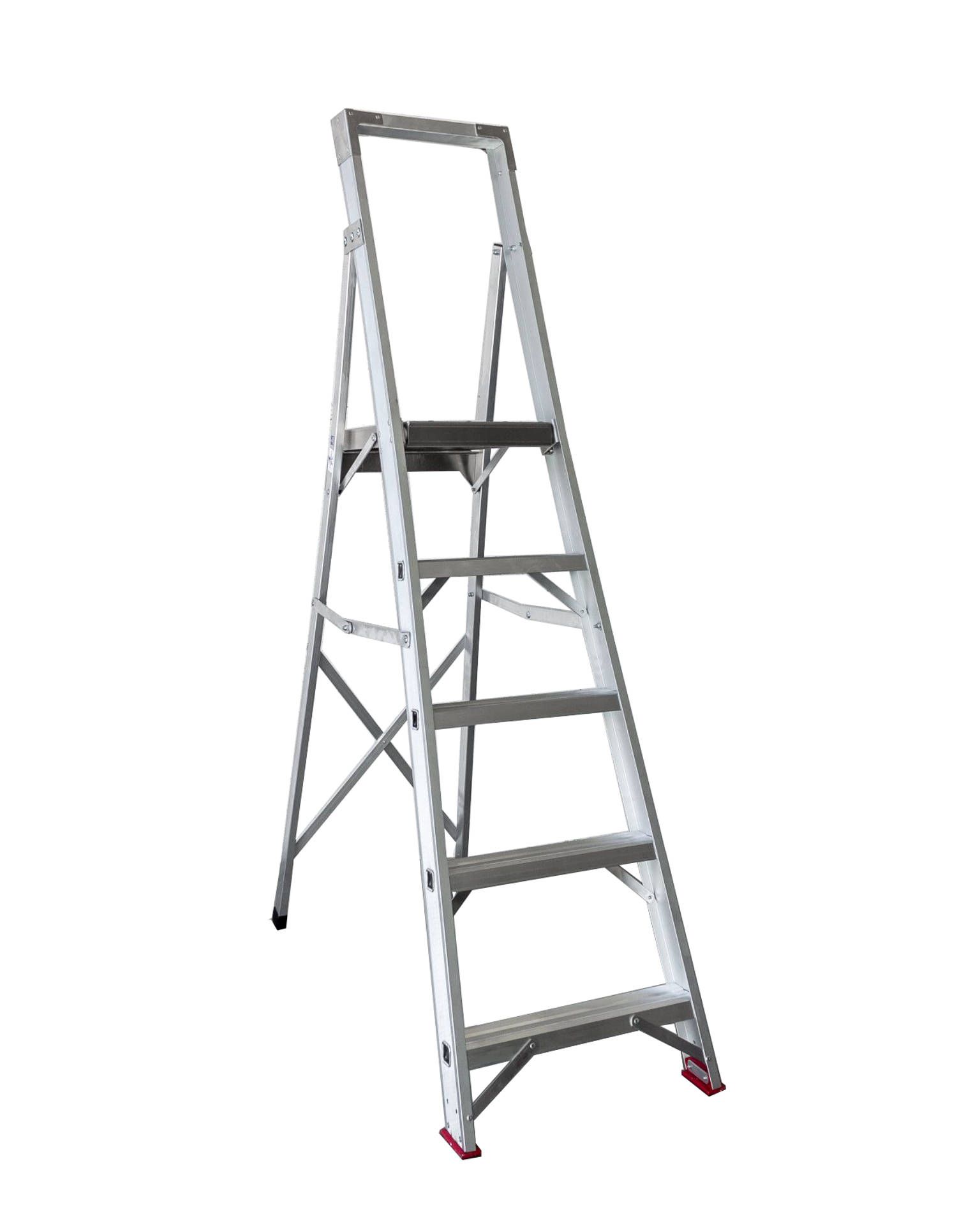Inhemska platta stegar för krävande professionell användning. Den låga vikten och den höga arbetsnivån gör dem lämpliga för både byggarbetsplatser och industrin.