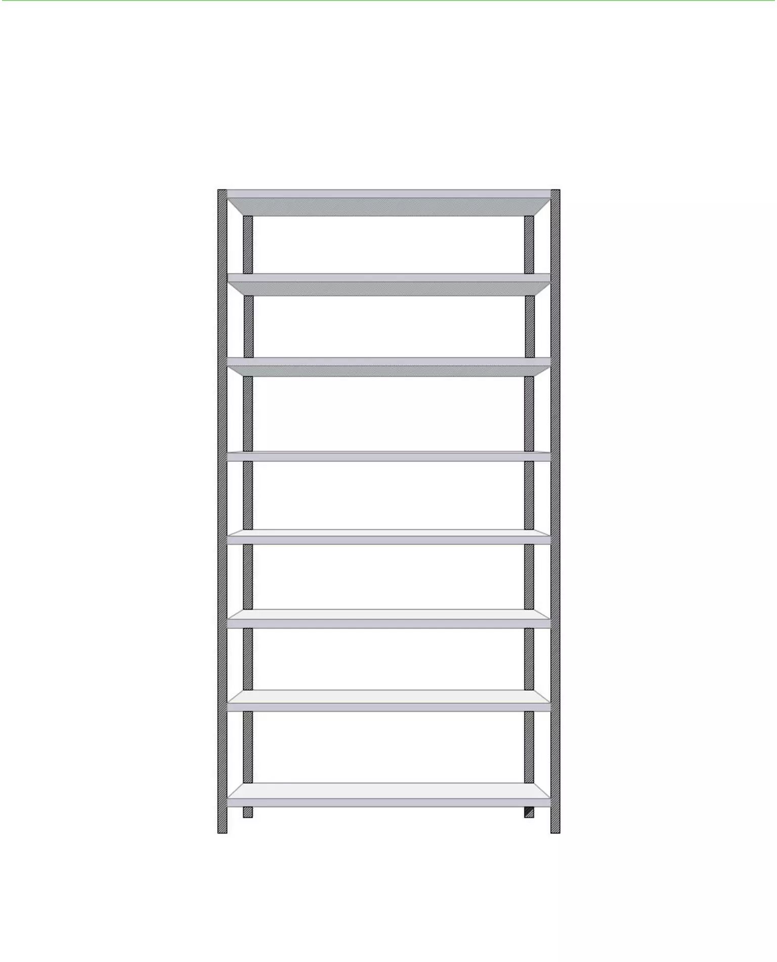Basenhet 2480 mm hög: 4 pelare, brickor, stödplattor, 8 hyllplan och konsoler.