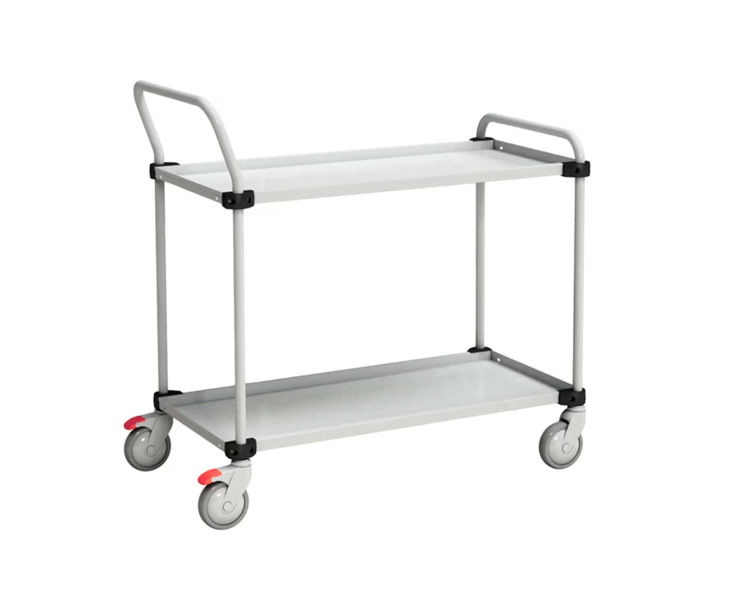 Treston-vagn för hemmabruk med två hyllplan. Lämplig för många olika behov, t.ex. transport av verktyg, mellanlagring eller förflyttning av komponenter i verkstäder och på sjukhus.