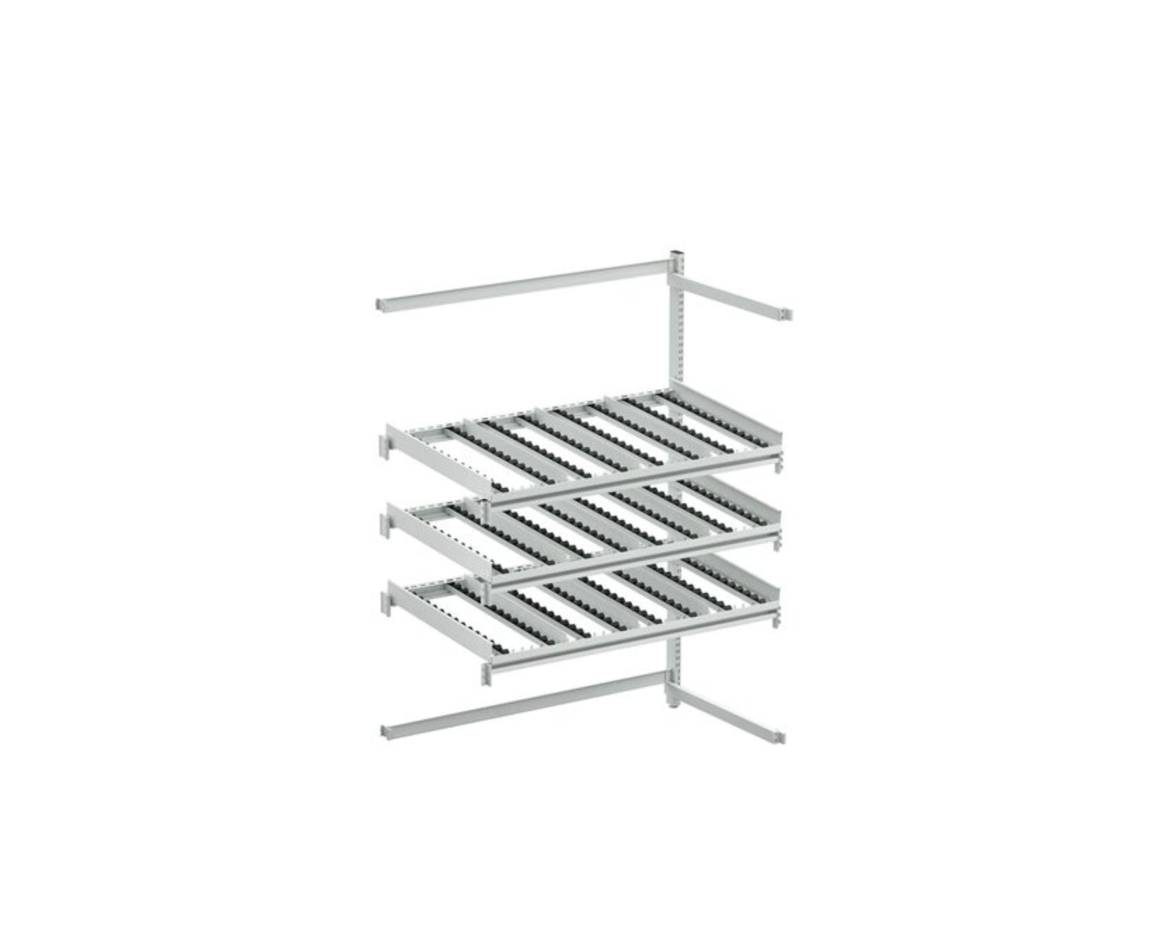 - Produktspår Hemsidan FörvaringAndra förvaringshyllorHyllor med genomströmning Treston genomströmningshylla M1350, sidobackspärr ESD