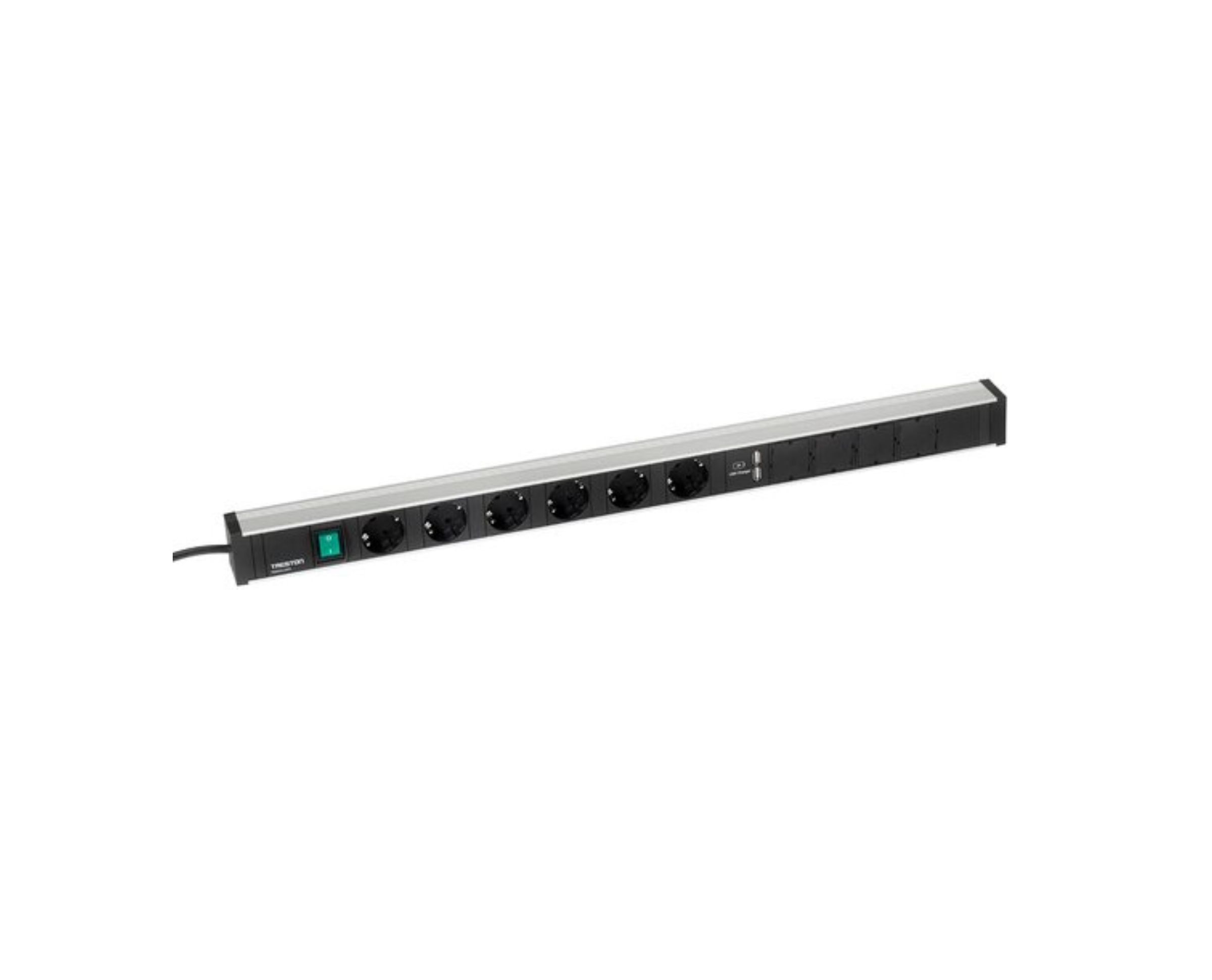 Uttagspanel med sex Schuko-kontakter, strömbrytare och 2xUSB-laddare. 4,5 m lång nätsladd. För horisontell montering på M900 justerbar rörmodul eller aluminiumprofil.